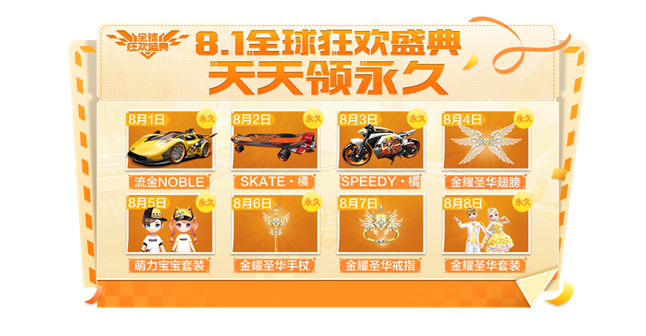 8.1全球狂欢盛典,华丽载具极品套装天天领,一起来玩耍吧!