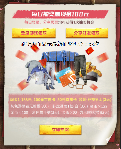 活动期间,每日登录游戏或分享页面给好友均获得1次抽奖机会