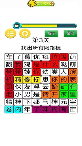 这款游戏是一款休闲益智解谜类的作品,玩家在游戏中需要寻找目前流行的网络热词以及经典电影名。仔细观察那些巧妙的排列组合,挑战自己的眼力和反应速度,绝对非同凡响,快来试试你的能力吧!