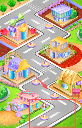 2、沿着红色箭头的方向,从1号建筑走到2号,或者探索附近的其他建筑,发现更多游戏乐趣。