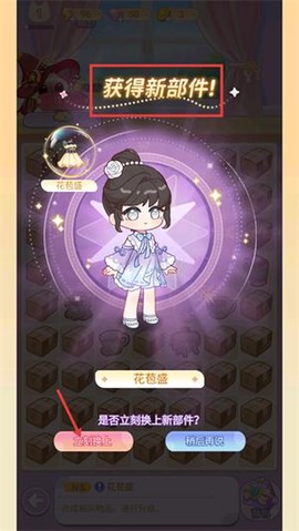2、成功获得新的部件——花苞篮后,你可以选择立即替换或者稍后再做更换,这样可以推动装扮类任务的进程。