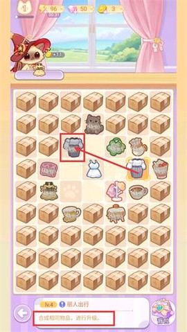 1、在关卡中,尝试合成相同物品,这能够帮助你推进丽人出行的进度,找到棋盘内的对应物品,完成合成以升级关卡并获取道具。