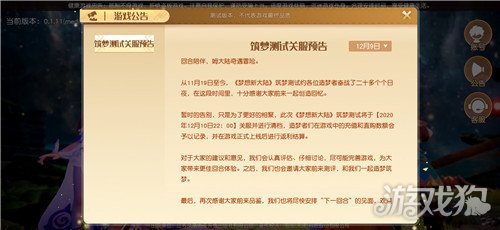 梦想新大陆筑梦测试什么时候结束 筑梦结束公告