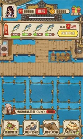 你是否曾梦想拥有一个自己的鱼塘,亲手养活那些色彩斑斓的鱼类?我的养殖场正是这样一款鱼塘模拟经营类游戏,它为你提供了一个自由而充满乐趣的养鱼体验。在这里丰富多样的鱼类等待着你的收集,每天定时为鱼儿投喂饲料,帮助它们健康快乐地成长。当鱼儿成长到一定等级后,你可以自由出售,获取丰厚的回报,甚至能够轻松兑换成现金红包,绝对让人惊喜!