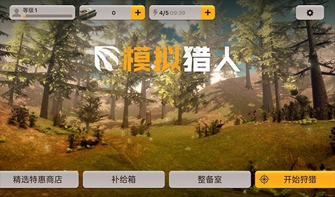 1、首先下载安装模拟猎人,揉合兴奋与期待,打开游戏,迎接令人振奋的主界面。