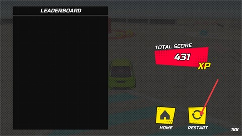 4、关卡结束后,查看你的总得分,想要再来一局的话,就点击黄色的【RESTART】按钮,继续挑战这个赛道吧!